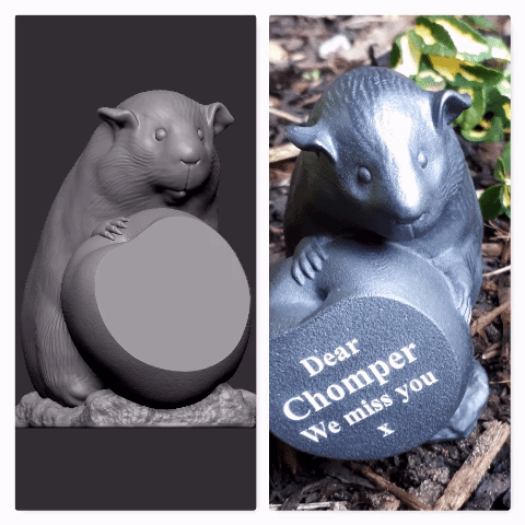 A guinea-pig memorial statue sculpted in commission for ChuchYardAngels.
