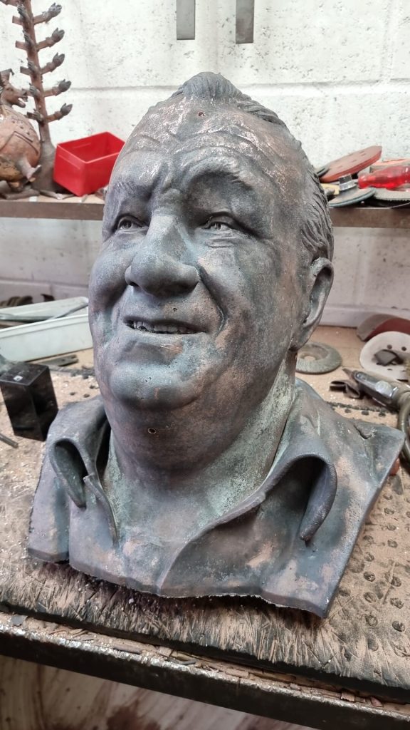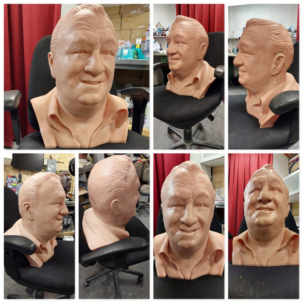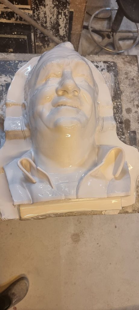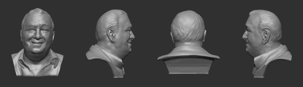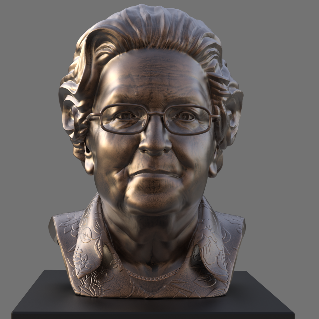 A portrait from digital 3d sculpt to 3d printed to bronze sculpture.