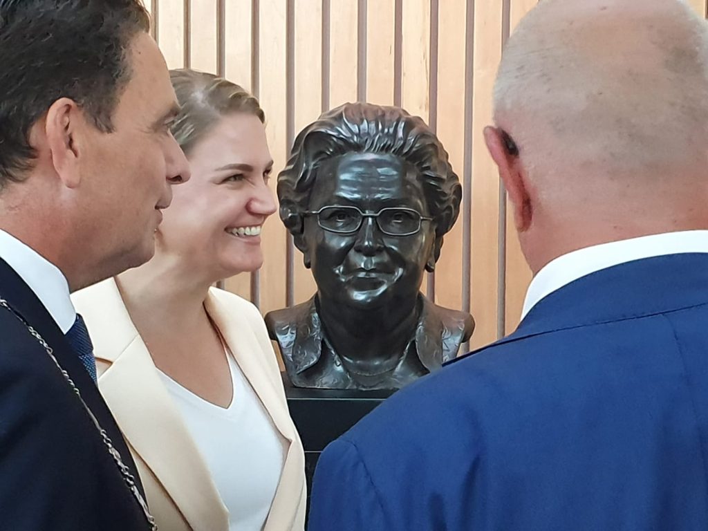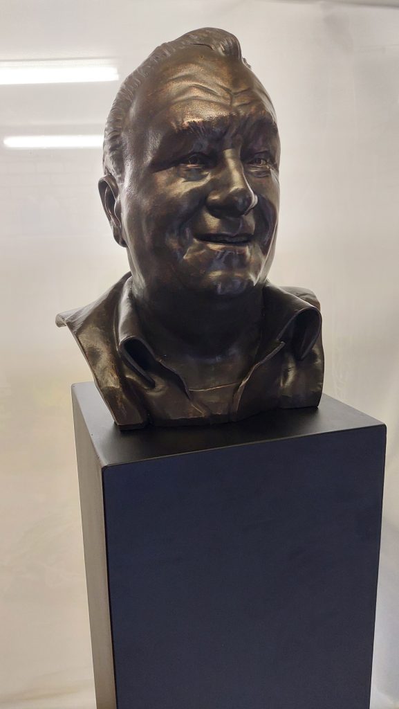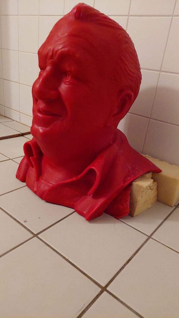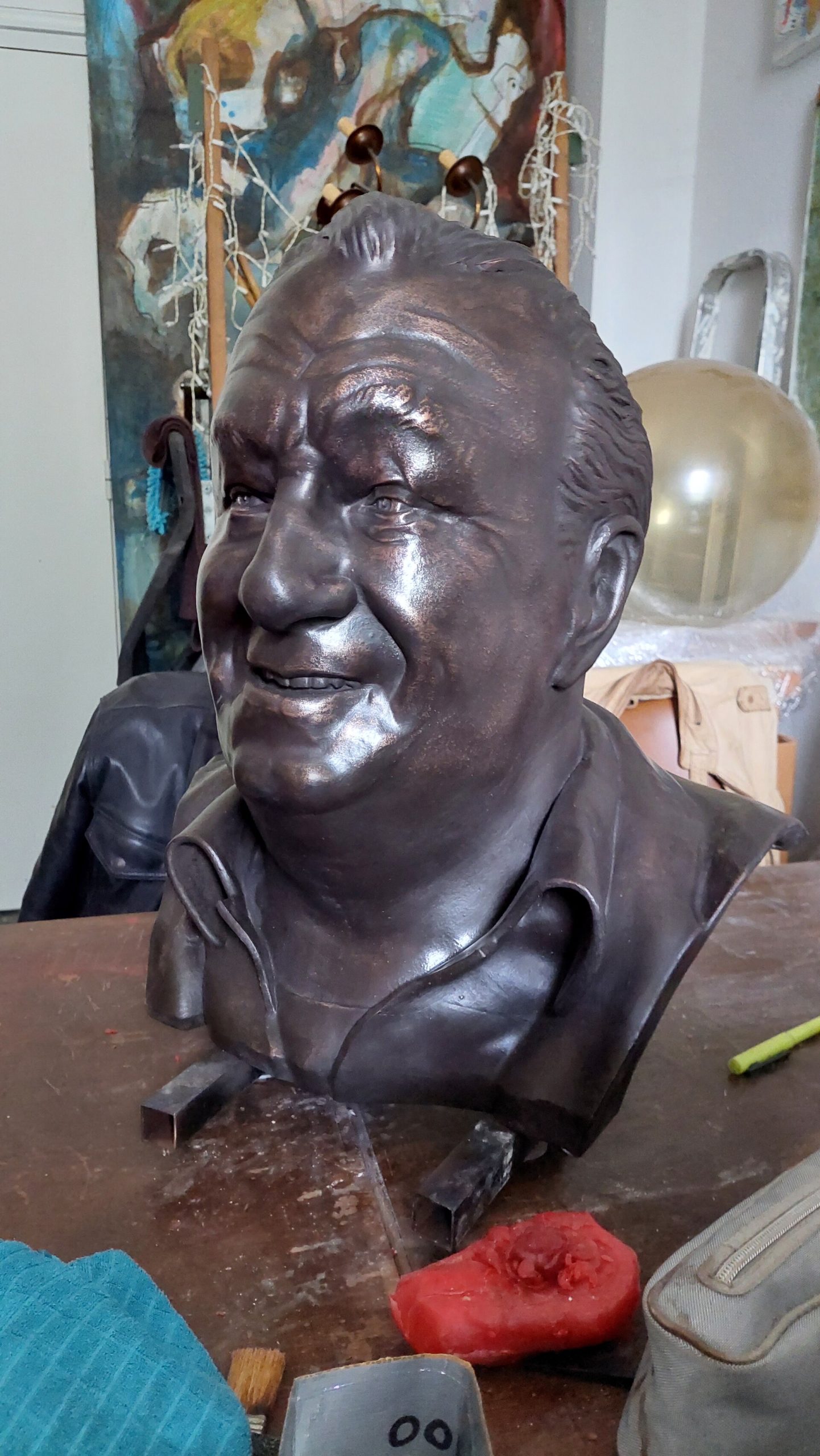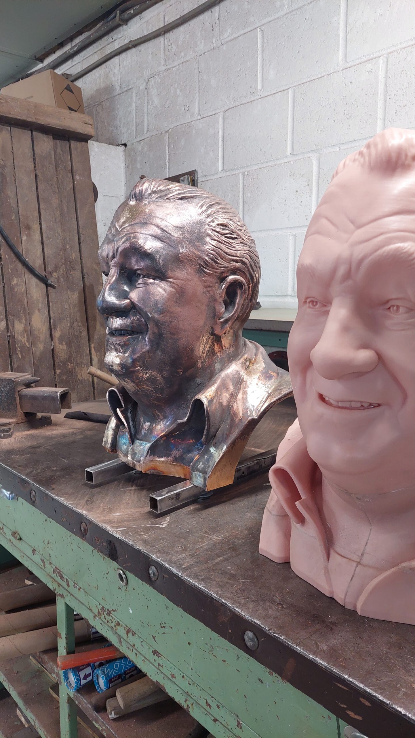 A portrait from digital 3d sculpt to 3d printed to bronze sculpture.